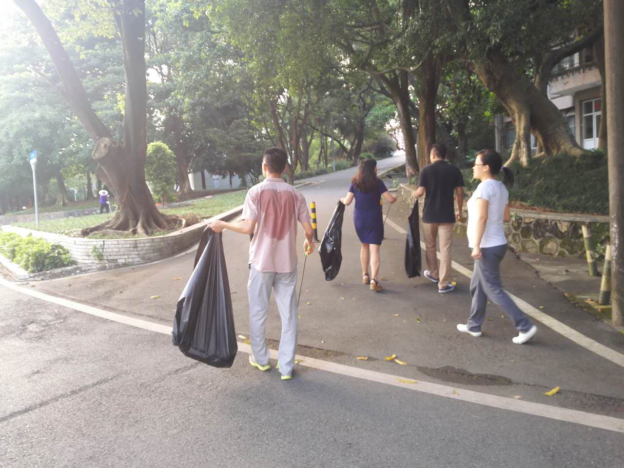 在活動開展過程中,雖然外面的天氣依然炎熱,并沒有阻擋大家的熱情,所有參與活動的人員手持工具認真清理廣化園區(qū)內(nèi)的垃圾,小到一片碎紙屑一個回形針也沒有落下,即使汗流浹背,全體人員無瑕自顧,堅持將園區(qū)內(nèi)的垃圾清理干凈。今后,廣州化學將繼續(xù)以在職及研究生黨支部、團委為單位,每月輪流組織一個單位開展“創(chuàng)建文明有序廣化園區(qū)”活動。