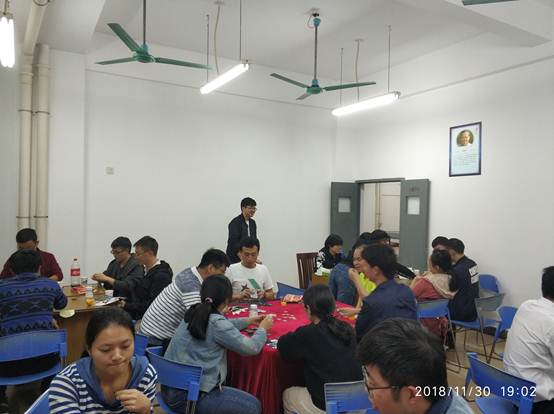 11月30日,研究生會組織了一場 “德州撲克”棋牌交流活動。當晚活動開始,同學(xué)們陸續(xù)來到研究生公寓一樓活動室,熱烈討論著今晚的比賽及相關(guān)規(guī)則。在主持人通告完游戲規(guī)則與玩法后,隨著一聲“開始”,5桌比賽同時進行。參賽同學(xué)為了爭取獲勝,開始了智力的比拼和心理的博弈。隨著引人注目的抽獎環(huán)節(jié)得到來,活動也進入了高潮,多名同學(xué)獲得了幸運禮品。在一片歡聲笑語中,同學(xué)們既享受了游戲帶來的樂趣,也進一步增進了相互間的感情。