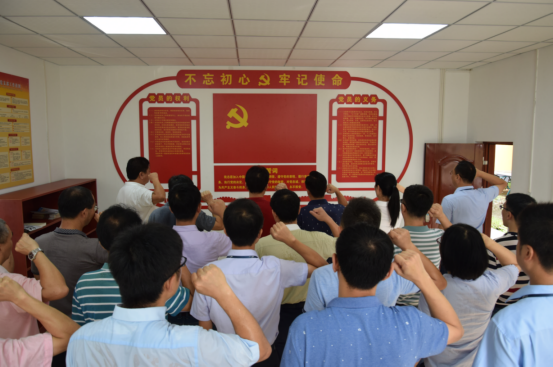 在廣州化學(xué)黨員活動(dòng)室,胡美龍帶領(lǐng)全體參會(huì)人員重溫了入黨誓詞:“我志愿加入中國(guó)共產(chǎn)黨,擁護(hù)黨的綱領(lǐng),遵守黨的章程……永不叛黨”,全體參會(huì)黨員們高舉右手,面對(duì)鮮紅的黨旗莊嚴(yán)宣誓,鏗鏘豪邁的聲音在耳邊久久回蕩,讓每一位黨員的心靈再次受到震撼和洗禮。結(jié)合正在開(kāi)展的“不忘初心、牢記使命”主題教育,通過(guò)重溫入黨誓詞,激發(fā)了全體參會(huì)人員作為一名共產(chǎn)黨員的自豪感與責(zé)任感。胡美龍要求全體參會(huì)人員銘記黨旗下的誓言,不忘初心,牢記使命,充分發(fā)揮黨員先鋒模范作用,深入貫徹落實(shí)正在開(kāi)展的“不忘初心、牢記使命”主題教育,以更加堅(jiān)定的信心投身本職崗位工作中,共同推動(dòng)廣州化學(xué)的快速發(fā)展。