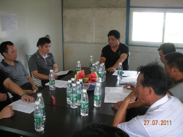 隨后,胡美龍一行聽取了施工單位及監理單位的階段性工作匯報,代表業主感謝施工單位和監理單位在盛夏酷暑氣候下的辛勤工作。并希望參加建設的各相關單位和所有現場施工人員同心協力、克服困難、加強管理、做好協調,保質保量按時完成施工任務。