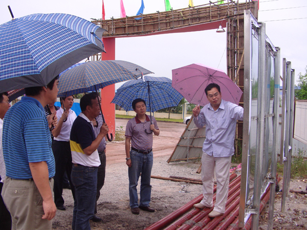 10月13日,張勇一行在廣州化學公司領(lǐng)導班子成員陪同下,赴南雄檢查廣州化學公司南雄材料生產(chǎn)基地(南雄基地)的建設(shè)工作。南雄市副市長何光明、呂道宏以及南雄精細化工園區(qū)的相關(guān)工作人員參加了接待。當天,恰逢南雄基地綜合樓封頂。張勇一行首先對建設(shè)工地現(xiàn)場的施工工藝、施工安全和施工管理進行了檢查和了解;隨后,聽取了施工單位、監(jiān)理單位和我公司駐地項目負責人的階段性工作匯報;王德瑞針對基礎(chǔ)建設(shè)工作提出了很多具體細致的要求:要求施工方、監(jiān)理方以及我公司駐地項目負責人依照法律、法規(guī)以及有關(guān)技術(shù)標準,履行相關(guān)職責和義務(wù),保證技術(shù)檔案和施工管理資料的完整性,確保施工的安全,保質(zhì)保量按期完工。張勇肯定了南雄基地的建設(shè)工作,他表示:希望南雄基地能進一步促進廣州化學公司的快速發(fā)展,同時為南雄的產(chǎn)業(yè)升級服務(wù)。
