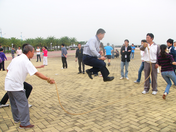 大家首先來到濱海公園炮臺前進行集體合影。接著,在濱海公園廣場舉行了精彩的游戲比賽,游戲比賽項目有手牽手鉆呼啦圈、胯下傳球和跳大繩,以八個工會小組和兩組研究生為單位共組成了十個參賽團隊,各隊在每個項目中的參與人數為6至8名,每個比賽項目按排名進行積分,最后以三項比賽的總分計算各隊最終排名。