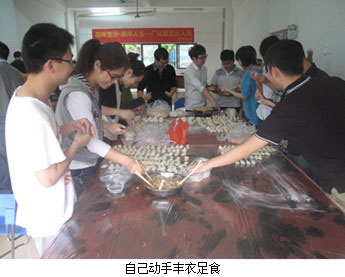 活動包括兩個環節,第一個環節是“廚藝達人秀”:為各參賽隊伍展示的環節;第二個環節是“全民享美食”:即全體研究生及參賽職工共同包餃子,并享用參賽選手做的美食及自己親手包的餃子。
