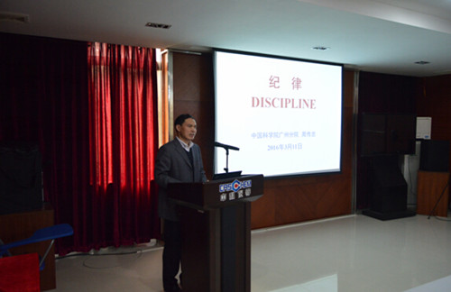 3月11日,中國科學院廣州分院黨組副書記、紀檢組組長周傳忠在監察審計處處長彭斌的陪同下到中科院廣州化學有限公司(廣州化學)作學習《中國共產黨廉潔自律準則》(《準則》)、《中國共產黨紀律處分條例》(《條例》)巡回報告會。廣州化學全體在職黨員和中層及以上領導干部參加會議。會議由廣州化學黨委副書記、紀委書記劉偉區主持。