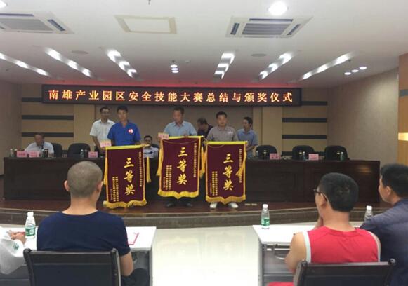 為進一步增強南雄產業轉移工業園內企業的安全生產意識和自我保護能力,促進安全生產工作進一步程序化、規范化和科學化,預防和杜絕重大安全生產事故的發生,南雄產業轉移工業園管委會、南雄市安監局和南雄化工協會在南雄產業轉移園開展了一次南雄產業園區安全技能大賽,大賽由安全生產知識競賽(筆試)和安全生產技能比賽2個部分組成,園區所有企業都組隊參加了此次比賽,經過2個部分的比賽,南雄基地獲得了三等獎。